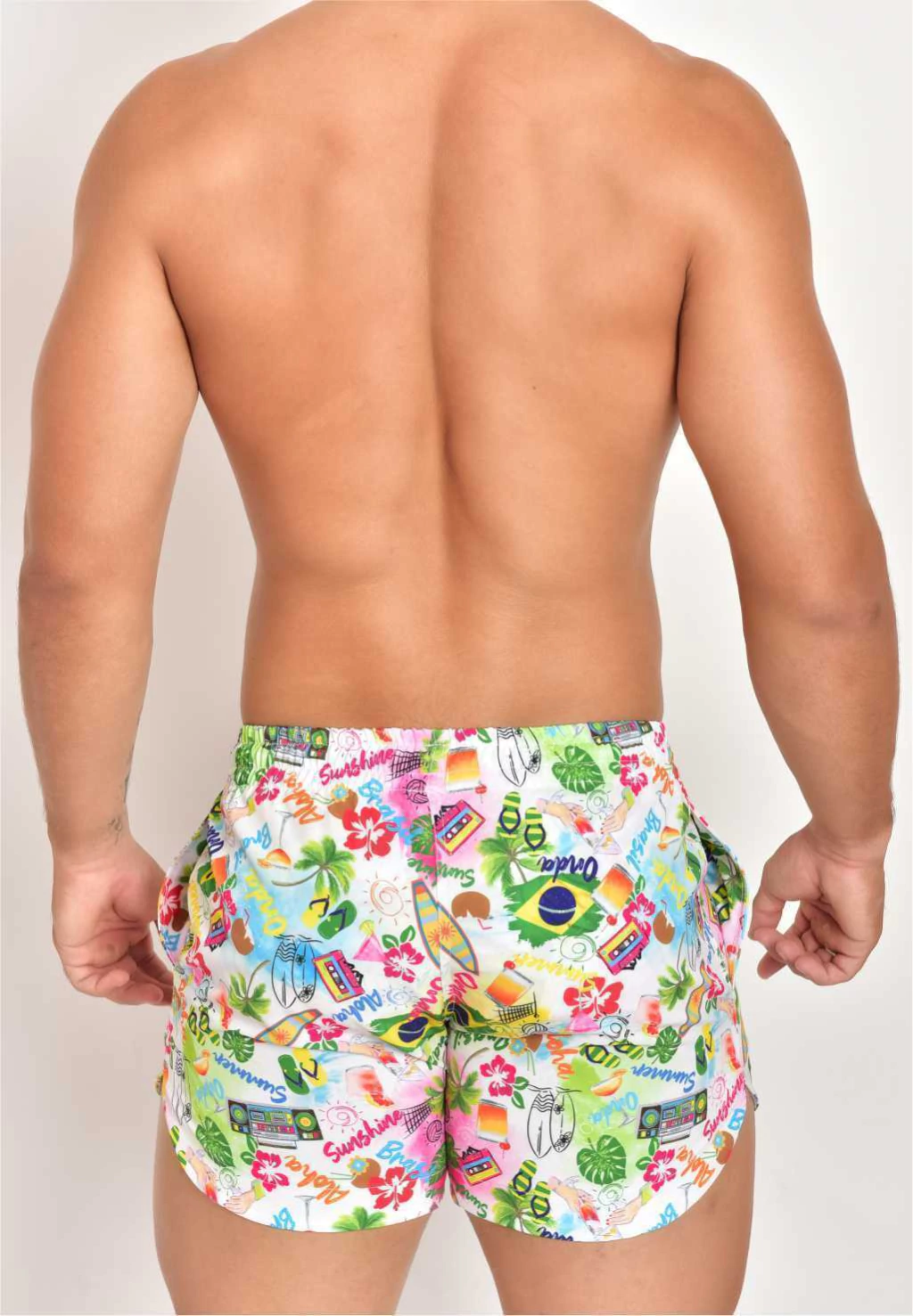 Confeccionado no tactel com elástano, possui 2 bolsos frontais, e com cordão para regular.