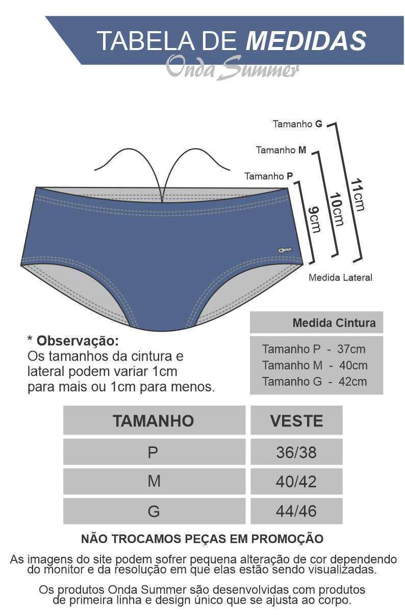 Além disso, a sunga conta com proteção UV 50+, protegendo sua pele dos efeitos nocivos do sol para você aproveitar o dia com segurança.